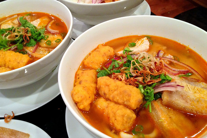 Món bún với nước dùng ngọt xương mang lại hương vị hấp dẫn.